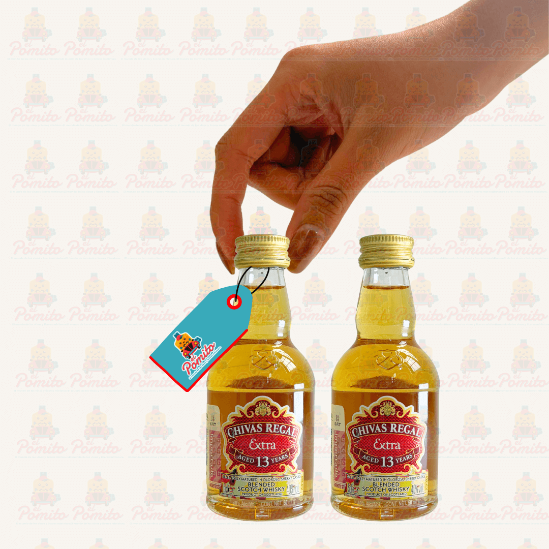 2 Mini Whisky Chivas 13 Terminado en Barricas de Jerez 50 ml. 40% Alc. Vol. Botella de Vidrio.