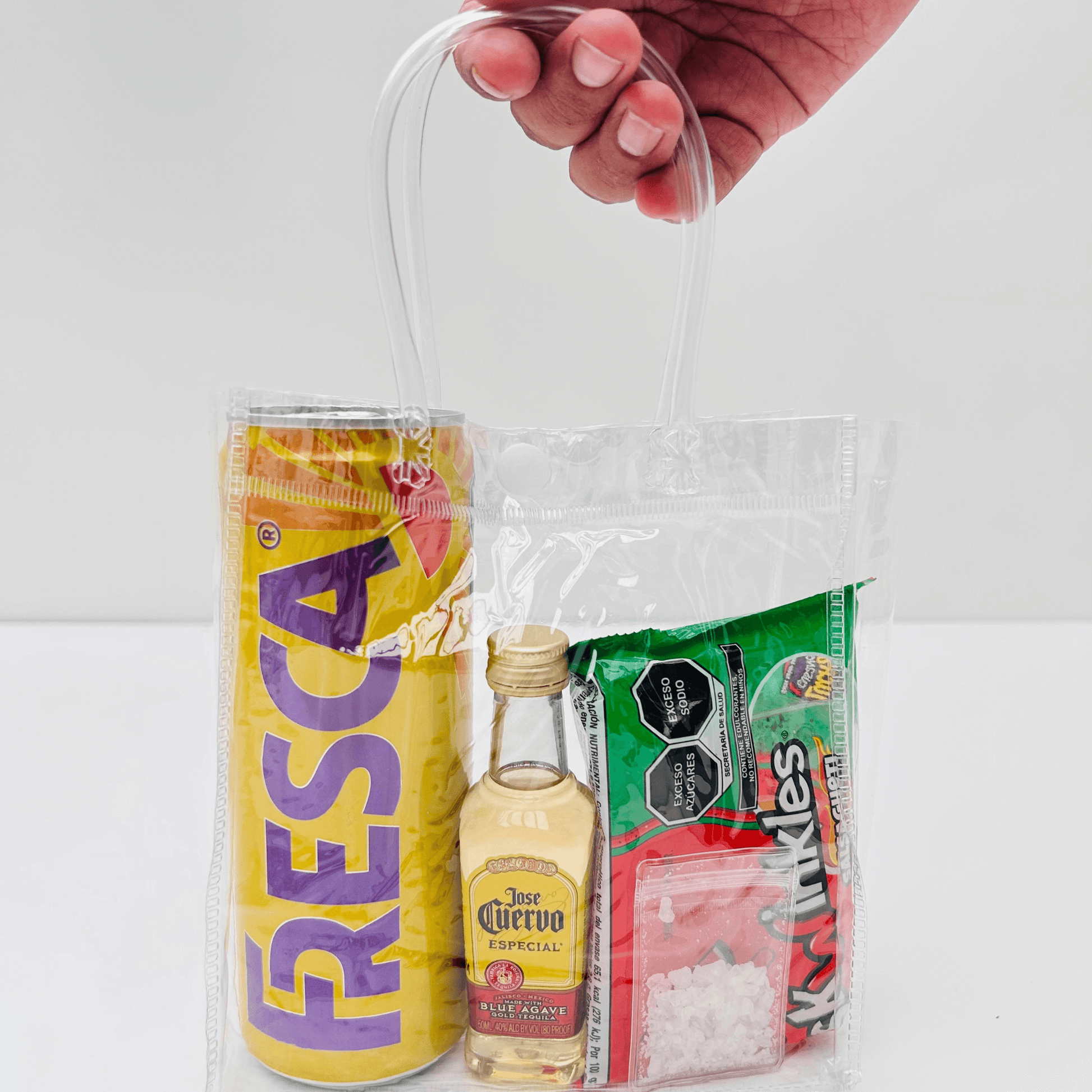 Mini Kit Palomita. Incluye mezclador fresca, mini jose cuervo gold 50ml, skwinkles, sal de grano y bolsas transparente.