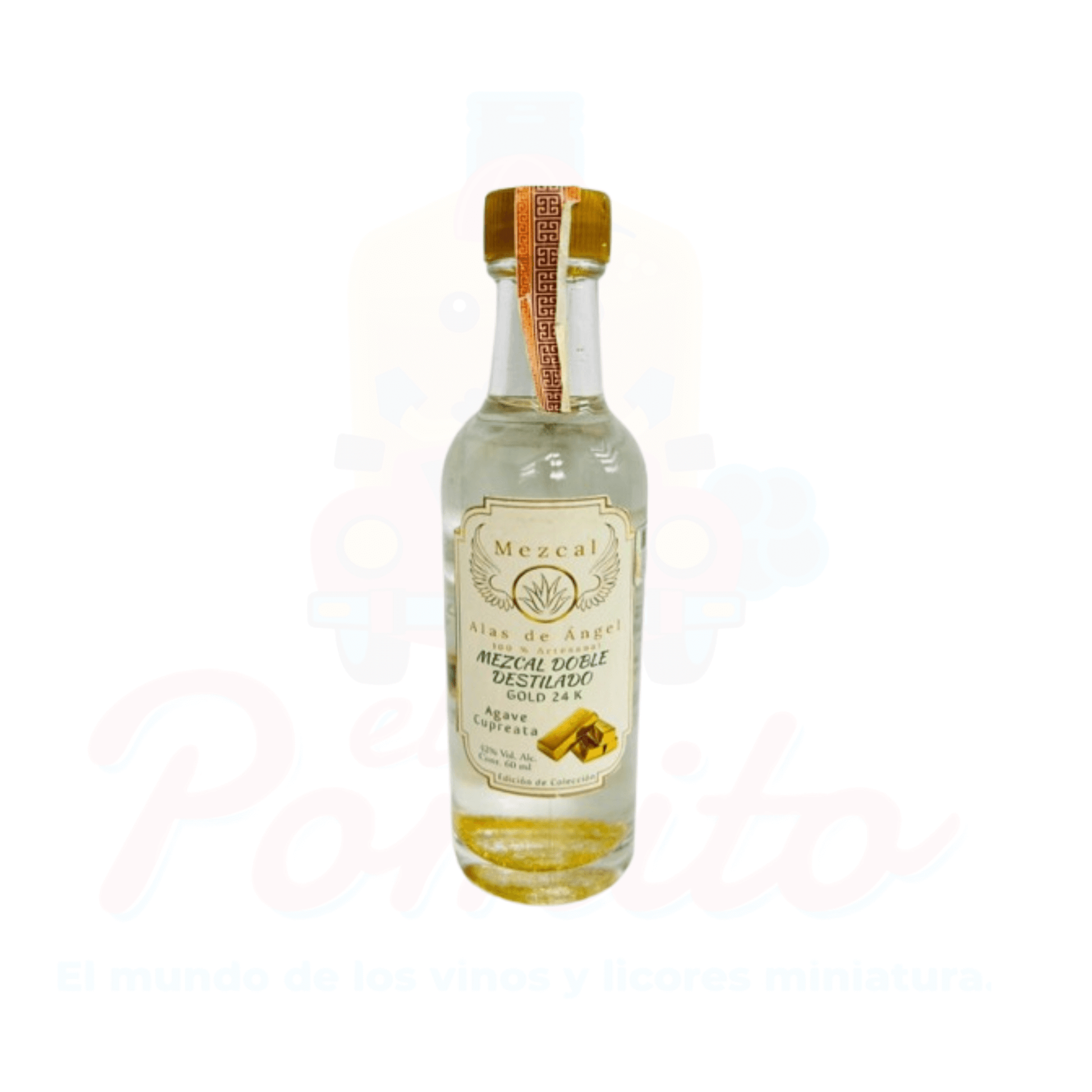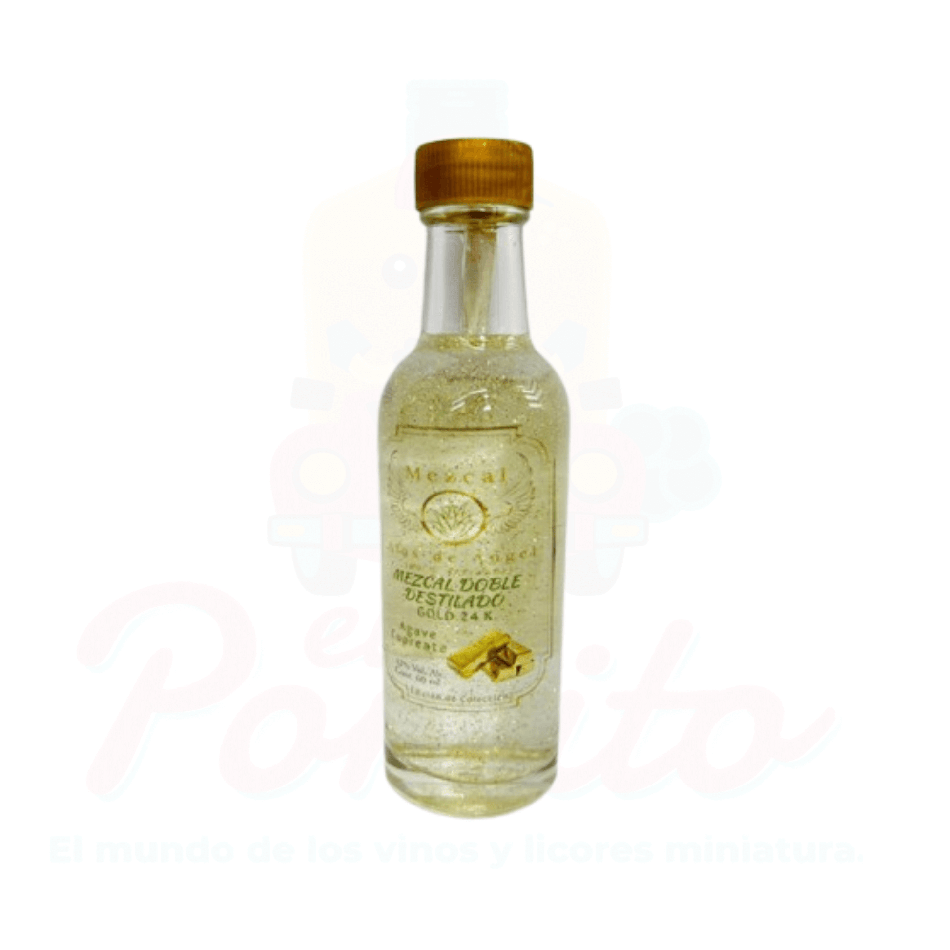 Mini Mezcal Alas de Ángel Doble Destilado Gold 24K 50ml. Botella de Vidrio. Alc. Vol. 42%