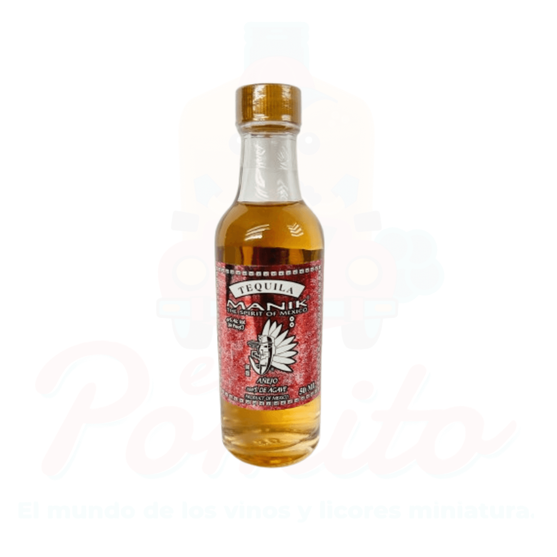 Mini Tequila Añejo Manik 50ml. 40% Alc. Vol. Botella de Vidrio.